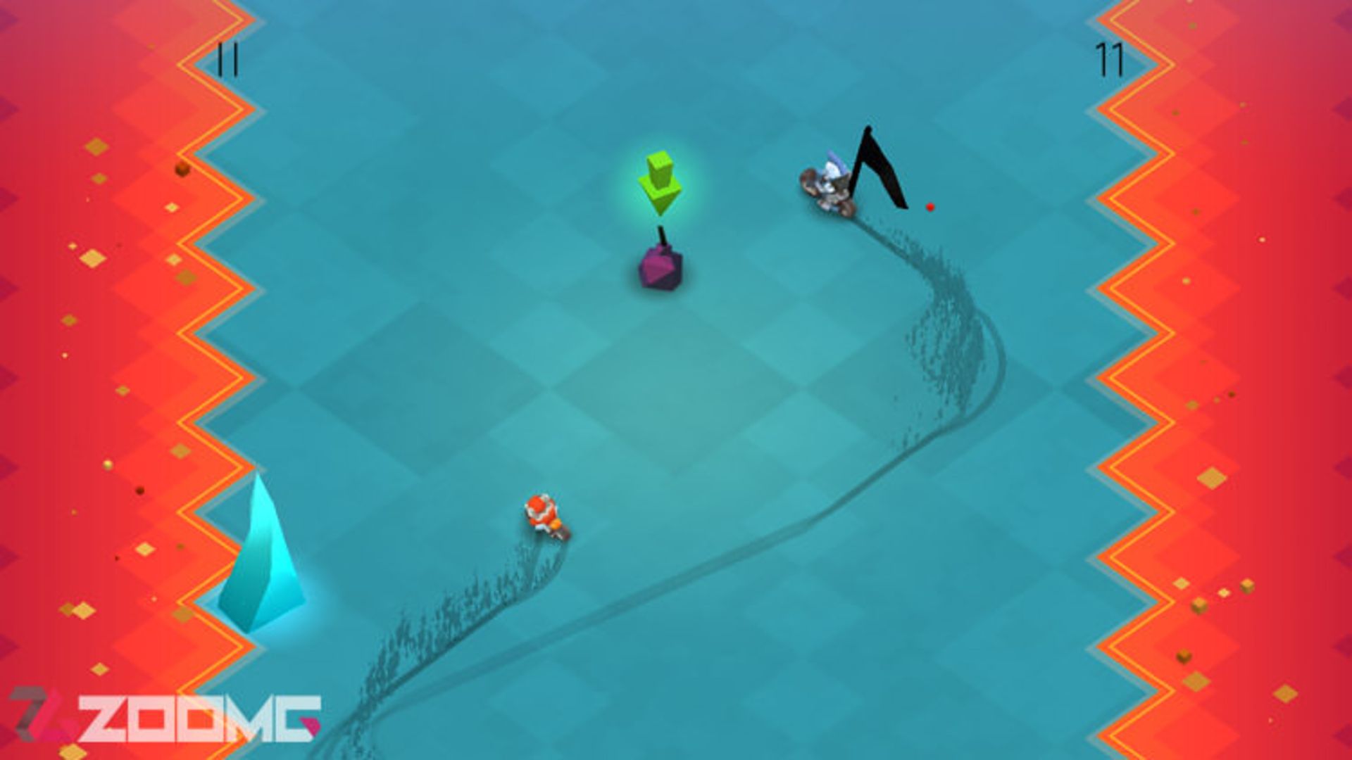 مورد چالش برانگیز دیگر در مسیر حرکت موتورسوار، کنارههای جاده است. کنارههای جاده مملو از مواد مذاب است و موتورسوار به محض ورود به این ناحیهها از بین خواهد رفت. بعد از اینکه زمانی در جاده حرکت کردید و تعدادی از موجودات در بین مسیر را نابود کردید با غول هر مرحله روبرو میشوید و باید آن را از میان بردارید که مبارزه با این غولها از قسمتهای بسیار سخت بازی محسوب میشود چون باید با استفاده از بمبهایی که غولها برسر راهتان قرار میدهند خودشان را نابود کنید.