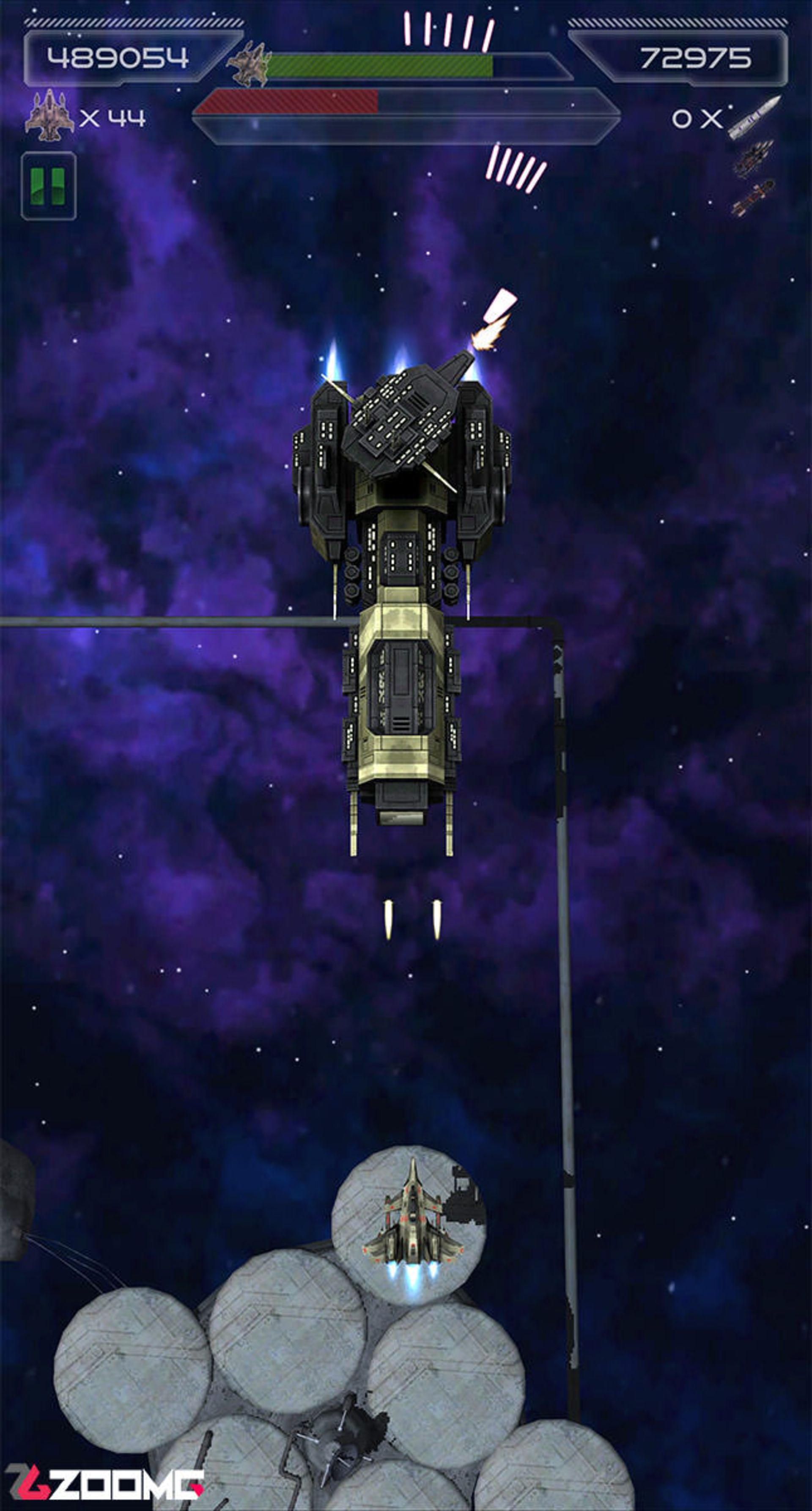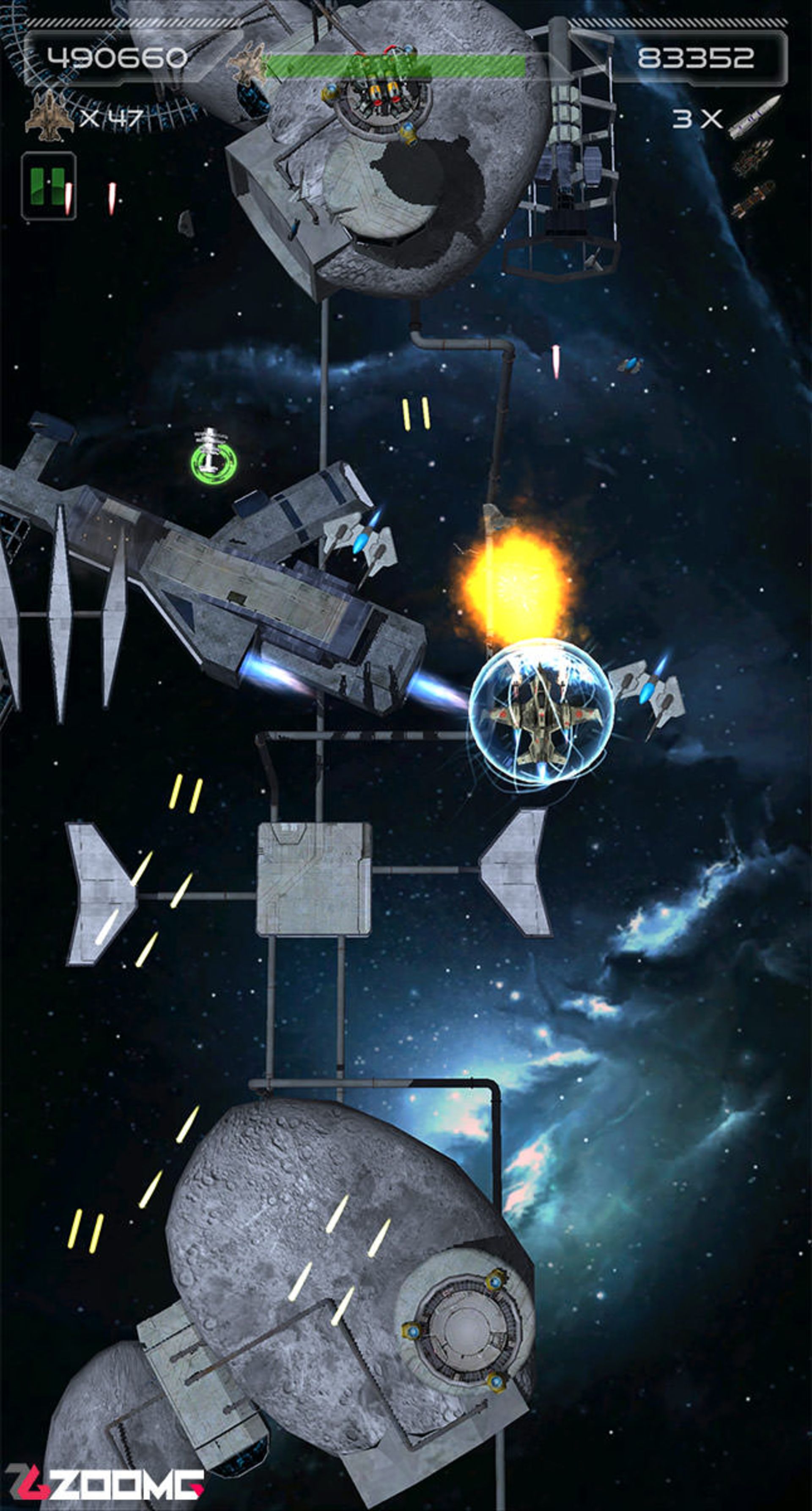 بازی در مجموع در ۵ سیاره جریان دارد و بازیکنان را به ۲۵ مرحله میبرد که در مرحله پایانی هر سیاره باید با باس قدرتمندی روبهرو شوید. باسها نیز هرچند دارای شباهتهای ظاهری هستند، اما نوع حمله آنها با یکدیگر تفاوت دارد. جنگیدن با باسها واکنشهای سریع شما را میطلبد و باید نهایت دقت را در رویارویی با آنها داشته باشید. تعلل در حمله به باس، باعث میشود تا او بتواند سپر دفاعی سفینه خود را بازگرداند و با توان بیشتری به شما حمله کند. اما یکی از مهمترین ویژگیهای ساخته استودیو مترسک، گرافیکها و طراحی محیط بازی است. سفینهها و لیزرها یا موشکهایی که پرتاب میکنند طراحی زیبایی دارد و در زمینه انفجار هر یک از دشمنان یا پرتاب راکت بسیار قدرتمند، افکتهای متفاوتی استفاده شده که باید برای این موضوع به توسعهدهنده تبریک گفت. بازی در هر یک از ۲۵ مرحله خود، دشمنان جدیدی را به شما معرفی میکند و در نتیجه در هر یک از مراحل باید با توجه به نوع حرکت جنگنده دشمن، جنگنده خود را کنترل کنید.