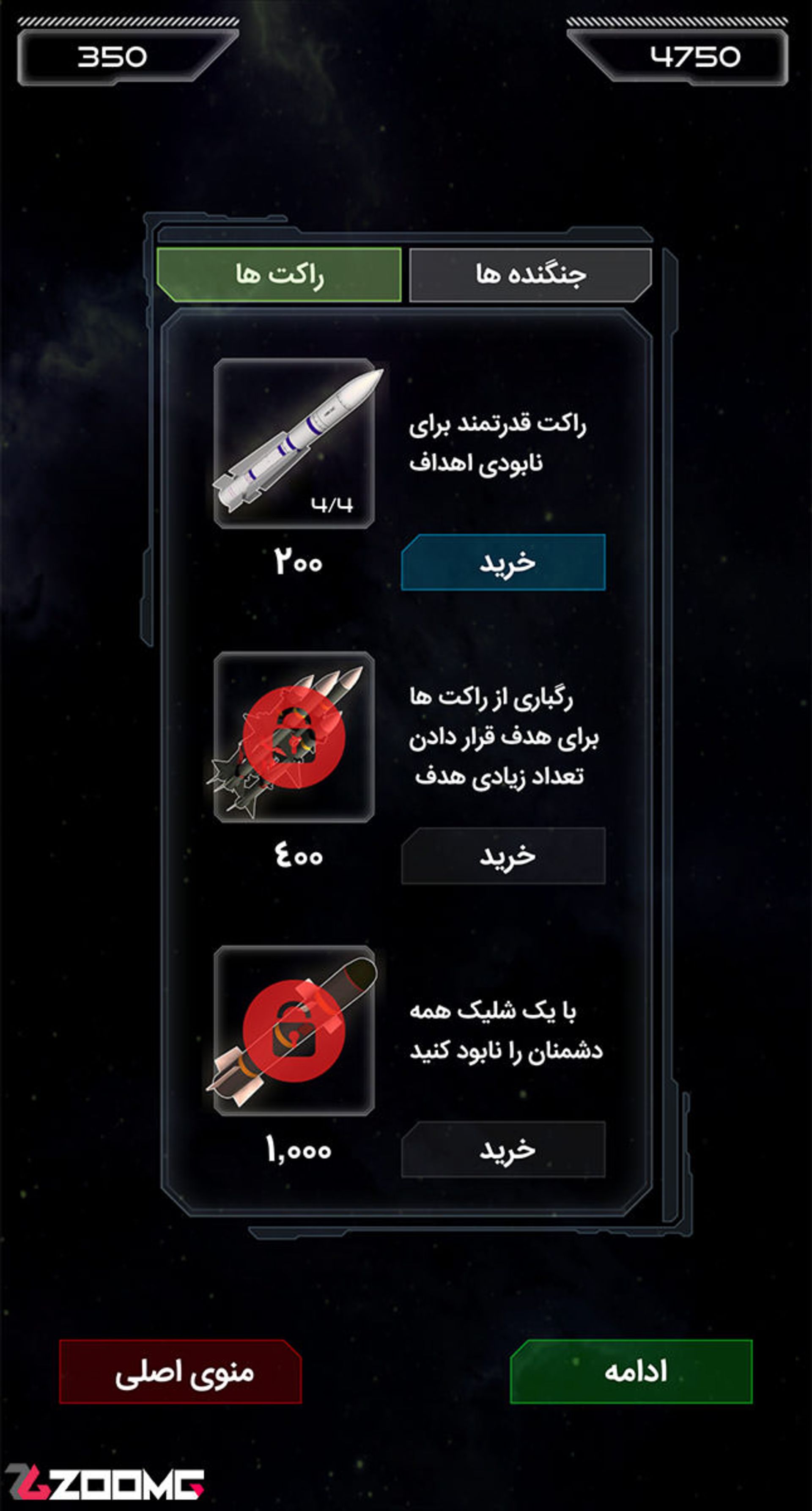 با جمع کردن غنیمتها جنگنده خود را ارتقاء دهید و مهمات بیشتری خریداری کنید
