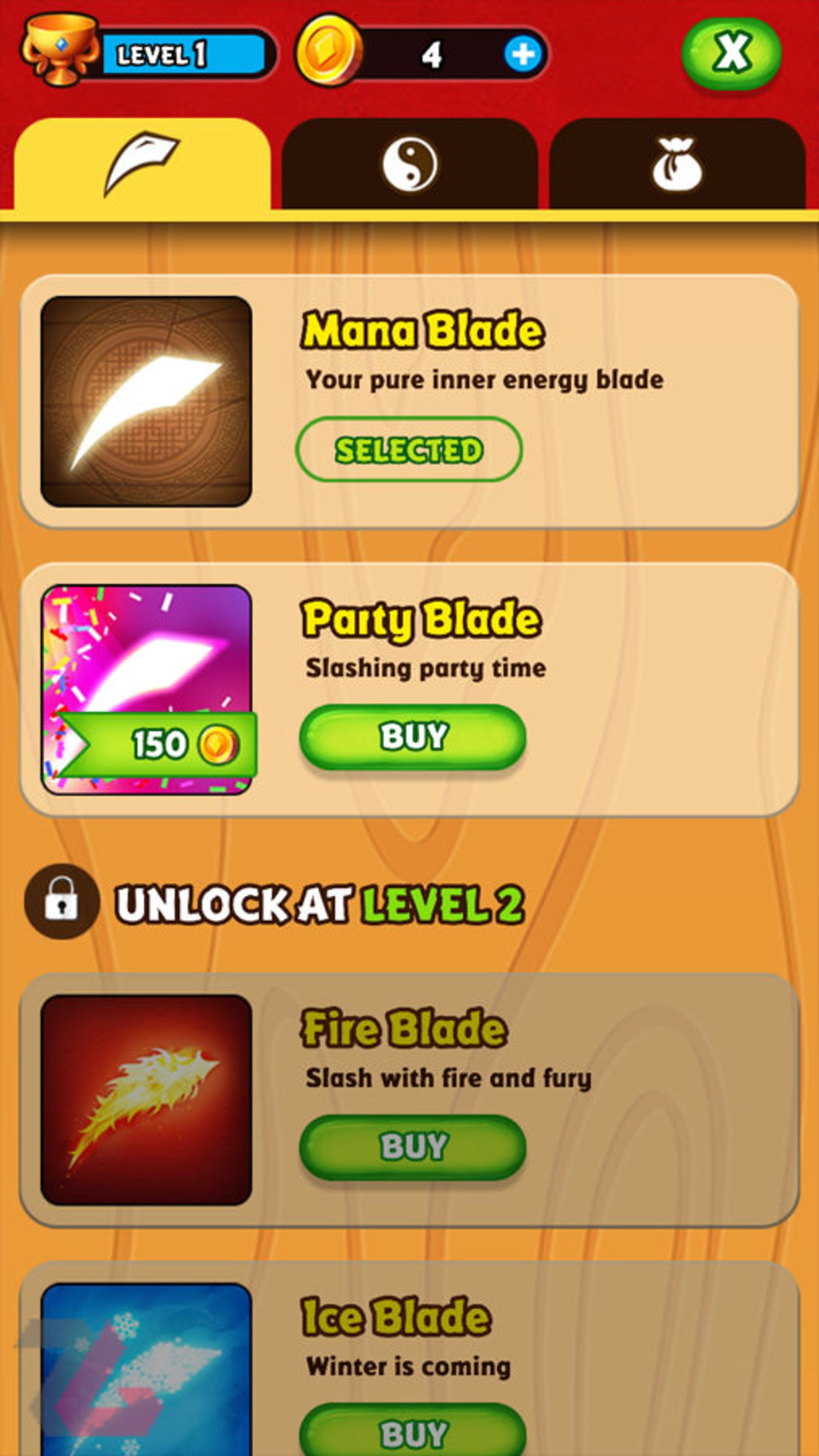 در محیط بازی، هر از چند گاهی به همراه قطعات چوبی، سکههایی نیز از بالا به پایین میآیند که در صورت جمع آوریشان، میتوانید از آنها برای خرید آیتمهایی که در فروشگاه بازی وجود دارند، استفاده کنید؛ در فروشگاه، تیغههای برش مختلفی وجود دارند که هر کدام از آنها به لحاظ ظاهری، طراحی مخصوص به خود را دارند. علاوه بر تیغهی برش میتوانید پس زمینهی بازی را نیز تغییر دهید تا به لحاظ بصری، محیطهای متنوعی را در حین بازی کردن، تجربه کنید؛ از آن جا که iSlash DOJO یک بازی رکوردی است، وجود محیطهای متنوع باعث میشود تا احساس یکنواختی کمتری در هنگام بازی کردن به بازیکن منتقل میشود. با ثبت رکوردهای بهتر در بازی، به مرور سطحتان نیز افزایش میابد. با هر بار افزایش سطح مقدار قابل توجهی سکه دریافت میکنید تا از آنها برای خرید در فروشگاه استفاده کنید. iSlash DOJO یک بازی رایگان است و به تبع همین رایگان بودن، تبلیغات نسبتاً زیادی نیز در بازی گنجانده شدهاند اما نکته مثبت بازی، بکارگیری جالب همین تبلیغات است؛ اگر در هنگام انجام بازی به یک رکورد خوب دست پیدا کردید و پس از آن ببازید میتوانید با مشاهدهی یک تبلیغ، بازی را از همان جا که باخته بودید آغاز کنید و به این ترتیب رکورد خود را از دست ندهید و حتی آن را بهبود ببخشید.