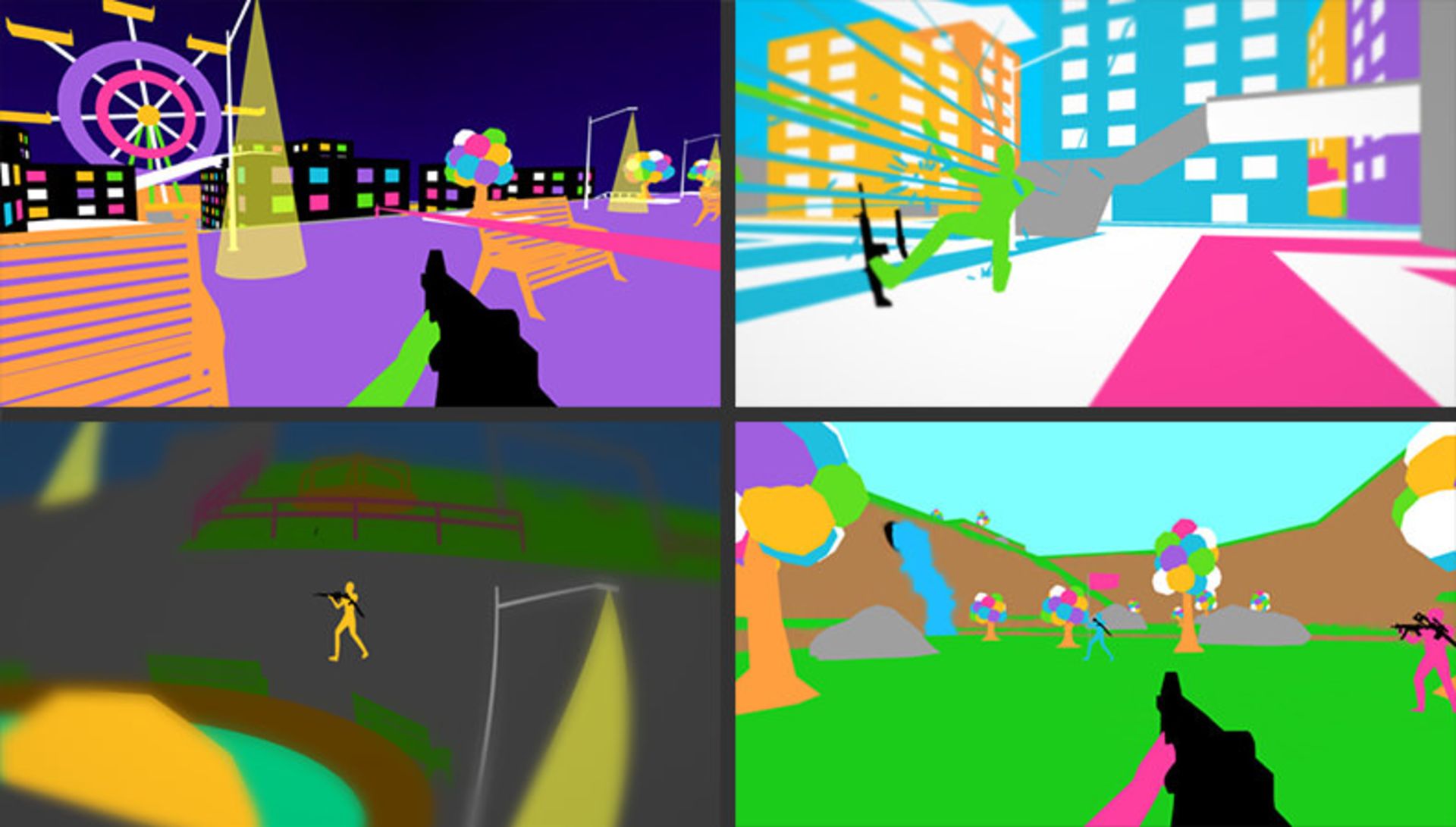 دیدن تصاویر این بازی کافی است که تا به عجیب و غریب بودن آن پی ببرید: رنگهای روشن و زنده در محیطی که اجسام هیچ بافتی ندارد و صرفاً شکلها و صفحههایی در فضا هستند که تنها با رنگهای مختلف از هم شناخته میشوند. سادگی در این بازی به نهایت خودش رسیده اما هستهی گیمپلی اکشن آن حفظ شده است. به دلیل عدم وجود سایهها، تمام گوشه و کنارهای محیط به خوبی قابل مشاهده هستند که این مورد برای یک گیمر بازیهای اکشن اول شخص نکتهای مهمی به شمار میرود. دقیقاً به دلیل همین مینیمال بودن بازی است که اکشنی بسیار سریع و روان دارد و دیگر نیاز به گوشیهایی با پردازندههای هشت هستهای و حافظهی رم بیشتر از حافظهی لپتاپتان برای اجرای راحت بازی ندارید.