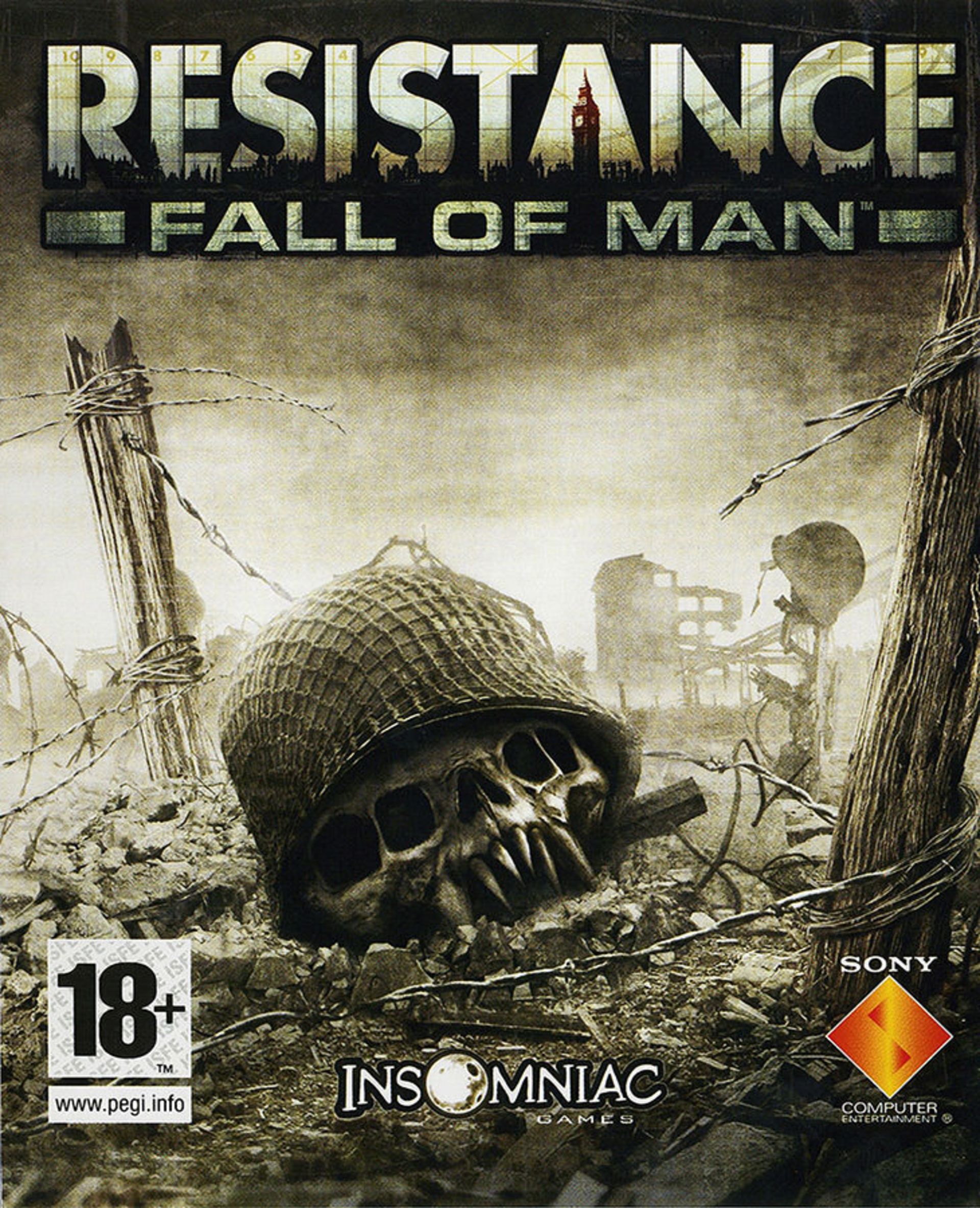کاور بازی Resistance: Fall of Man تصویری ترسناک و پرجزئیات دارد. ماجرای بازی درباره حمله بیگانگان به زمین است که نیروی Resistance برای مقابله با آنها وارد یک جنگ میشوند. جمجمه یک بیگانه با یک کلاهخود یک سرباز انسان که در یک شهر تخریب شده افتاده است، نشاندهنده بحران بزرگی است که بشریت را تهدید میکند که حتی انسانها از سرایت ویروس این موجودات در امان نیستند و بازیکن را به خوبی آماده میکند که وارد این بحران شود. جزئیات زیاد تصویر را میتوان حتی در لوگوی بازی دید که شهر تخریب شده را نشان میدهد. سازندگان با این کار این هشدار را میدهند که امنیت در هیچجای شهر وجود ندارد و ویروس بیگانگان قدرت نفوذ بالایی دارد.
