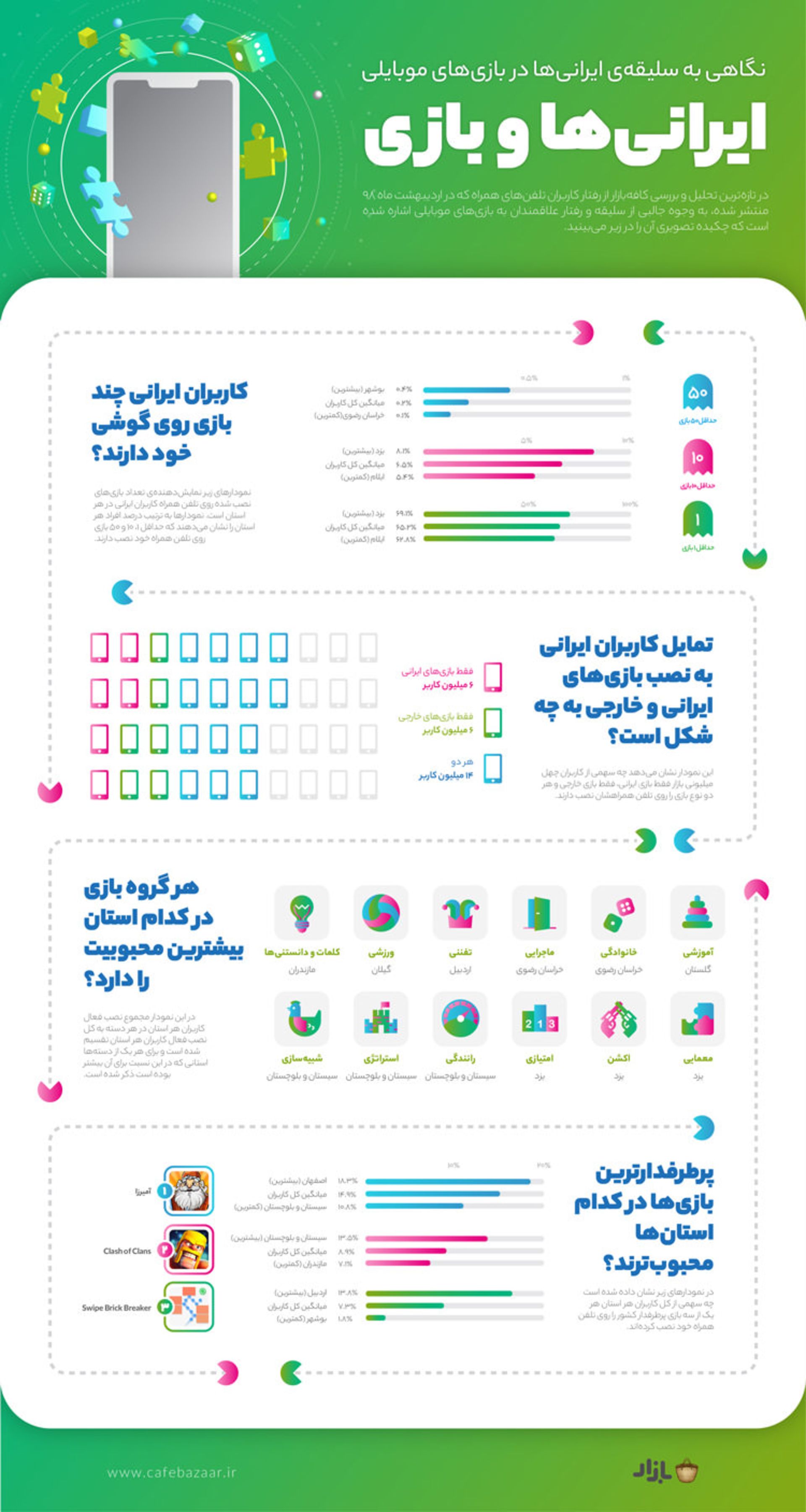 در انتها میتوانید اینفوگرافی منتشر شده توسط کافه بازار را مشاهده کنید (برای مشاهده اینفوگرافی با اندازه بزرگتر روی تصویر کلیک کنید):