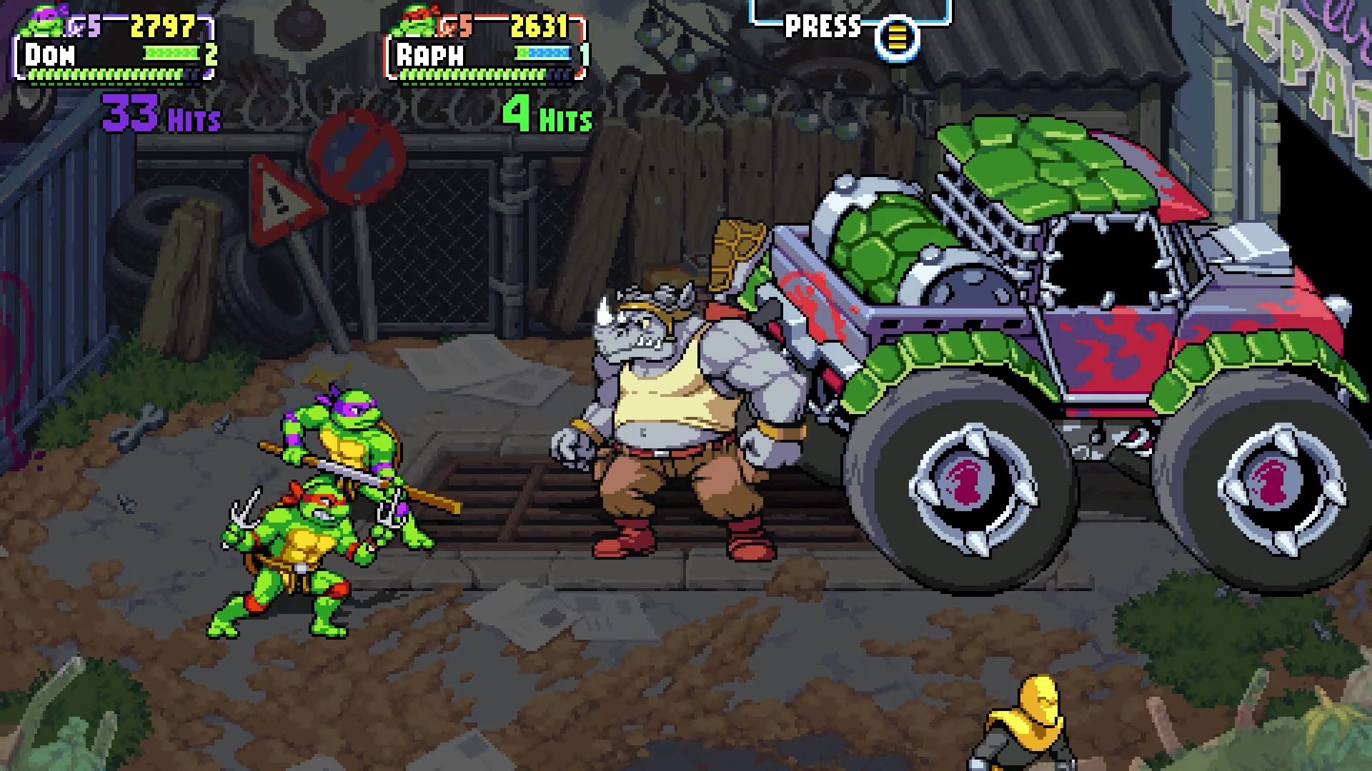 بله، تکتک مراحل دارای غول خاص خود هستند و میتوانید تصویر سایهمانند آن را در ابتدای مرحله ببینید. برای دموی PAX هم مراحلی با حضور بیباپ و راکاستدی تدارک دیده شده بود که جزو معروفترین شخصیتهای قدیمی این مجموعه هستند و از زیردستان شردر به حساب میآیند. ما برای بازی فهرست بزرگی از غولها را تدارک دیدهایم که به بیش از ۲۰ عدد میرسند؛ شخصیتهایی که آنها را در مجموعه انیمیشنی دیدهاید، ولی بعضی از آنها تا امروز در بازیهای ویدیویی لاکپشتهای نینجا حضور نداشتهاند. در این بازی درکنار شخصیتهای محبوب هواداران، غافلگیریهای جالبی هم خواهیم داشت و سعی کردهایم بازی TMNT: Shredder's Revenge درکنار حس و حال نوستالژیک خود، المانهای تازهای هم داشته باشد.
