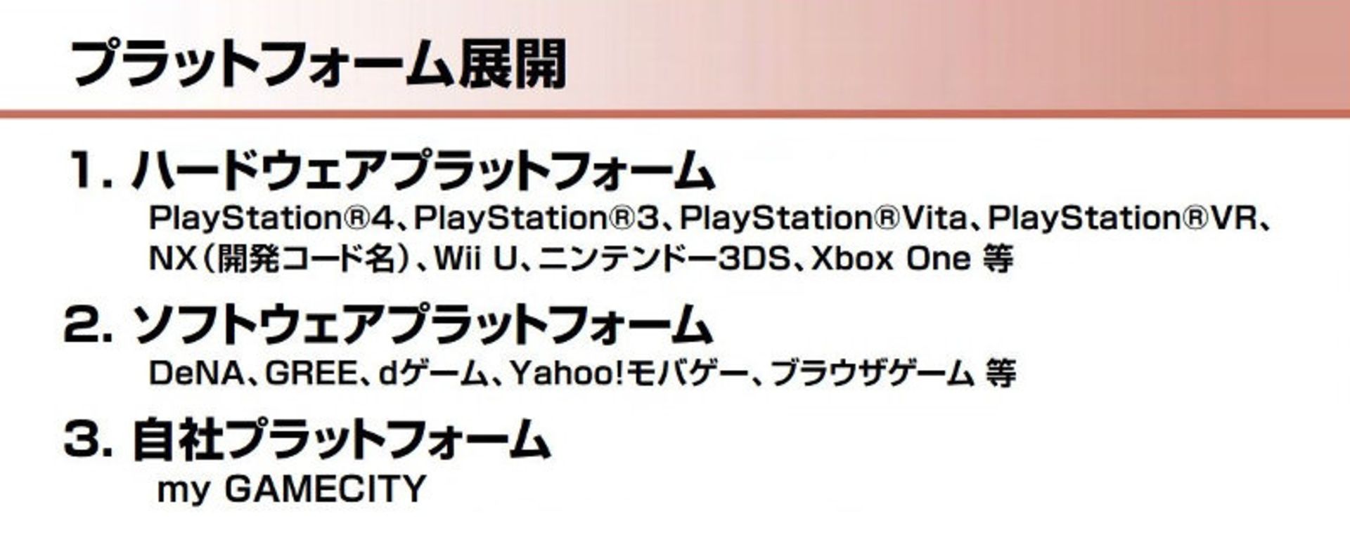 کوئی تکمو این موضوع را طی گزارش درآمدهایاش در سهماههی اول ۲۰۱۶، تأیید کرد. در این گزارش، تصویری وجود داشت که در آن، نام نینتندو انایکس و پلیاستیشن ویآر در کنار اسامی پلتفرمهایی مانند پلیاستیشن 4، ایکسباکس وان و Wii U قرار گرفته بود و از برنامههای کمپانی ژاپنی برای عرضهی محتوا برای این پلتفرمها حکایت داشت. البته هنوز مشخص نیست که آیا ناشر بازی NiOh قصد دارد آثاری جدید و انحصاری برای دو محصول مذکور بسازد یا آنکه فعلا به پورت کردن بازیهایاش روی آنها بسنده خواهد کرد.