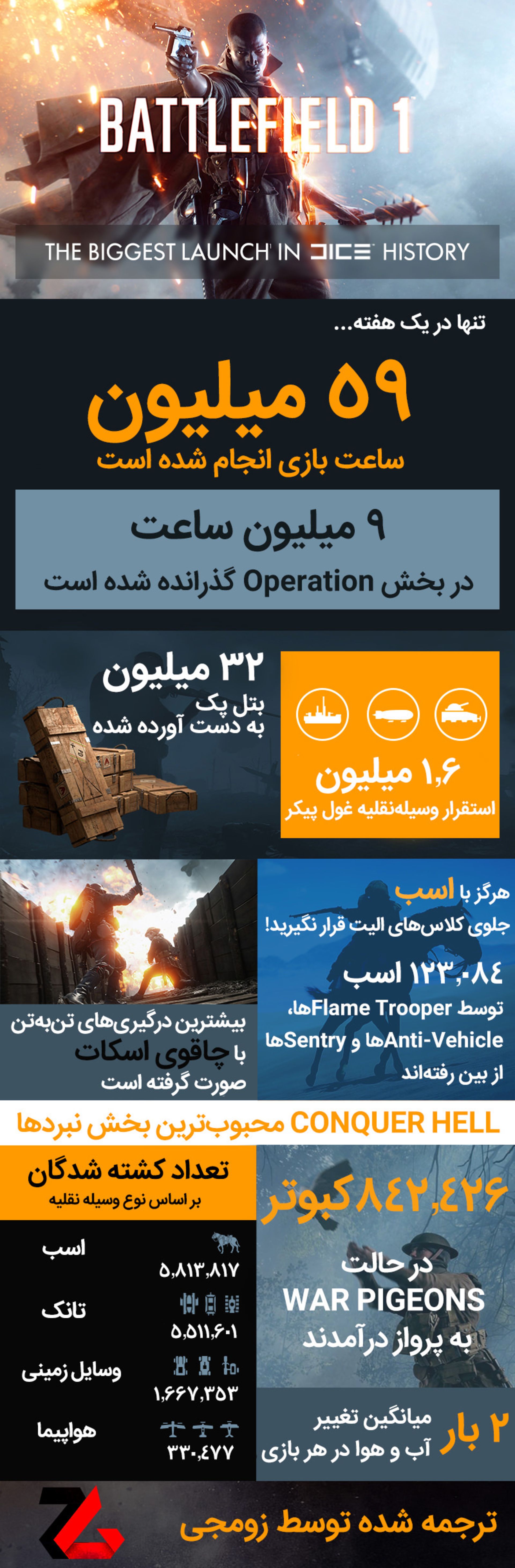 اینفوگرافیک Battlefield 1؛ ۵۹ میلیون ساعت بازی تنها در یک هفته