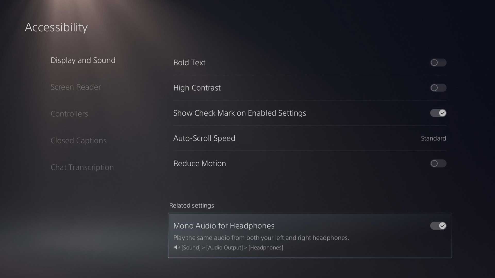 البته که یکی از مهمترین بخشهای آپدیت مربوطبه افزایش قابلیتهای Accessibility کنسول PS5 است. زبانهای روسی، عربی، هلندی، پرتغالی برزیلی، فرانسوی و فرانسوی کانادایی به Screen Reader (مطالعهی تمامی نوشتهها در کنسول برای گیمر و ارائهی راهنماییهای صوتی به گیمرهای نابینا و کمبینا) اضافه میشوند؛ تا تعداد زبانهای پشتیبانیشده در این بخش به ۱۵ برسد. افرادی که با صدای استریو یا میکس صدای سهبعدی مشکل دارند، گزینهی فعالسازی صدای Mono برای هدفون را در تنظیمات PS5 پیدا خواهند کرد؛ گزینهای که با فعالسازی آن، همواره صداهای کاملا یکسان برای هر دو گوش پخش میشوند.