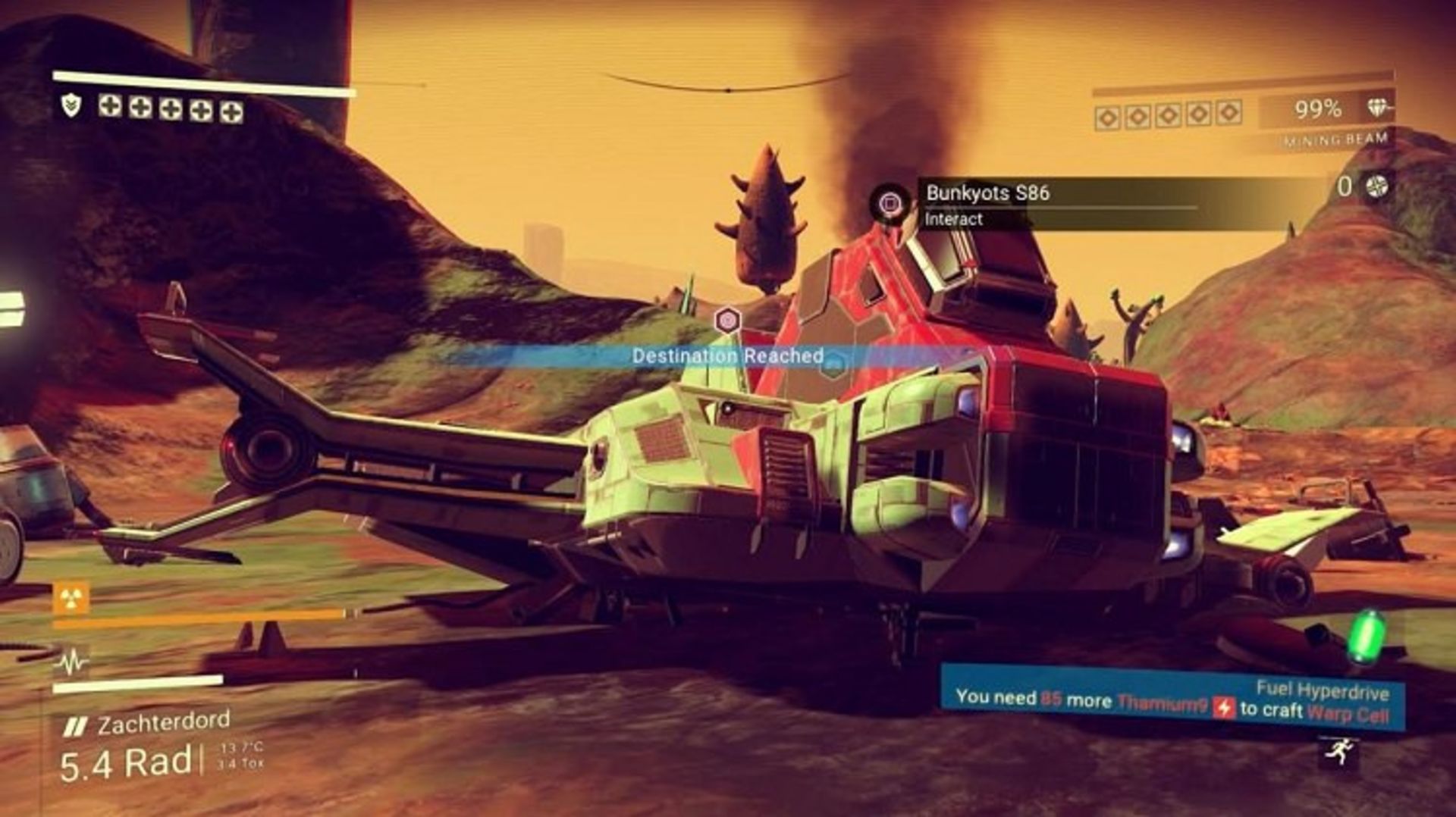 اگر سرگرم گشتن در دنیای زیبای بازی شده و از سفینهتان فاصله گرفتهاید، بهتر است به جای برگشتن دوباره مسیر به شکل پیاده، دنبال یک پایگاه بگردید. چرا که ممکن است در این پایگاه یک برج دیدبانی (Beacon) باشد که میتوانید با استفاده از آن سفینه را به موقعیت فعلی خودتان فرا بخوانید. برای انجام این کار به برج دیدهبانی رفته و با استفاده از Bypass Chip آن را فعال کنید. Bypass Chip را میتوانید خودتان بسازید.