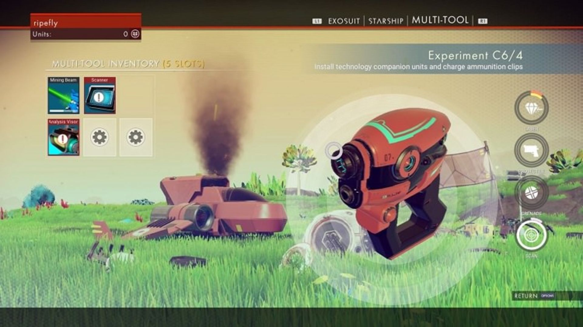 با این حال اینکه Multi-tool شما چه قابلیتهایی داشته باشد، وابسته به فضایی (slot) است که دارد. اولین ابزار چندکاره شما فقط ۶ فضا دارد که سه تای آن هم از ابتدا اشغال شده است. پس بهتر است به جای صرف پول برای ارتقا Multi-tool اولیه، سراغ خرید ابزار جدیدتر بروید؛ ابزاری که فضای بیشتری در اختیارتان قرار میدهد.