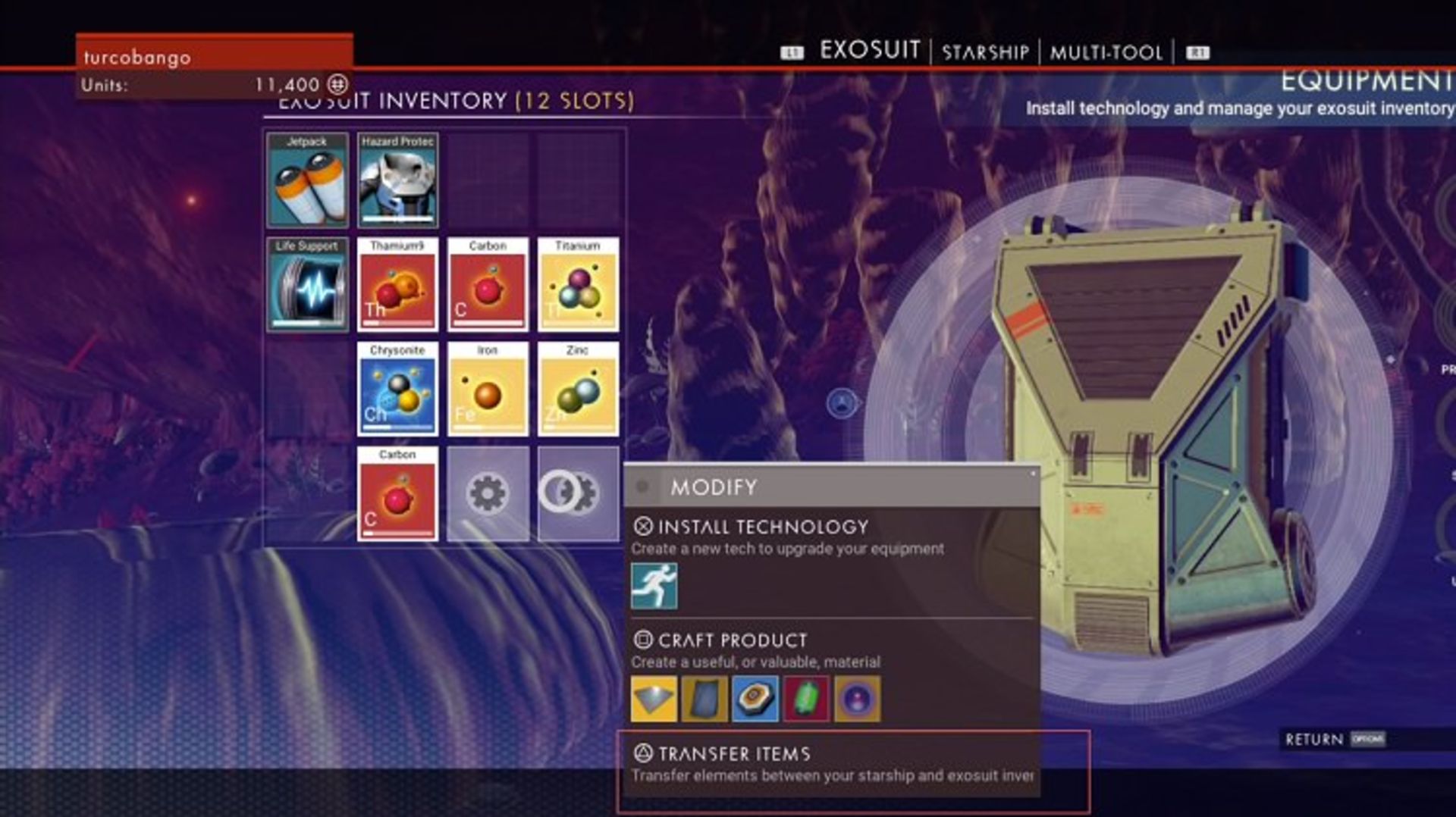 زمانی که در حالت پیاده روی سطح سیارهها دنبال منابع میگردید، پس از مدتی آیتمهایی را که پیدا کردید به سفینه انتقال بدهید. چرا که ظرفیت سفینه برای نگهداشتن منابع دو برابر لباس فضانوردی است. البته این را هم در نظر داشته باشید که اگر به یکی از منابع نیاز داشته باشید، باید برگشته و آن را از سفینه بردارید.