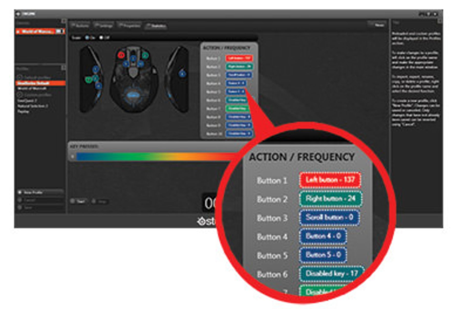 فرقی نمیکند که شما در حال بازی کردن یک بازی شوتر اول شخص هستید یا در حال کار بار فوتوشاپ. میتوانید با استفاده از ماژول آمار این نرمافزار، تمامی کلیدهایی را که فشاردادهاید، ضبط کنید و سپس بعد از اتمام کارتان، آمار آنها را مشاهده کنید. این آمار، به صورت دقیق به شما نشان میدهد که چه کلیدهایی را فشردید. با استنادبه این آمار سپس شما میتوانید برای خود ماکروهایی را تعریف کنید که عملکرد شما را تا حد بسیار زیادی بهبود بخشند.